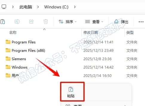 7.打开桌面“此电脑”,打开C盘根目录,粘贴刚刚复制的“ProgramData”文件夹