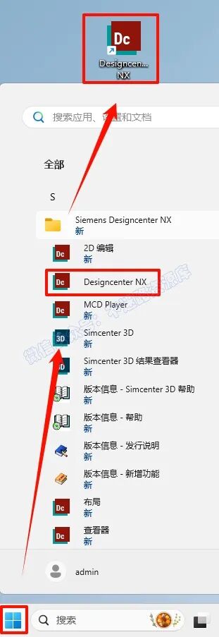 20.点击“开始“菜单栏,点击“所有应用“,找到“NX“软件,鼠标左键拖拽到桌面上即可创建桌面快捷方式