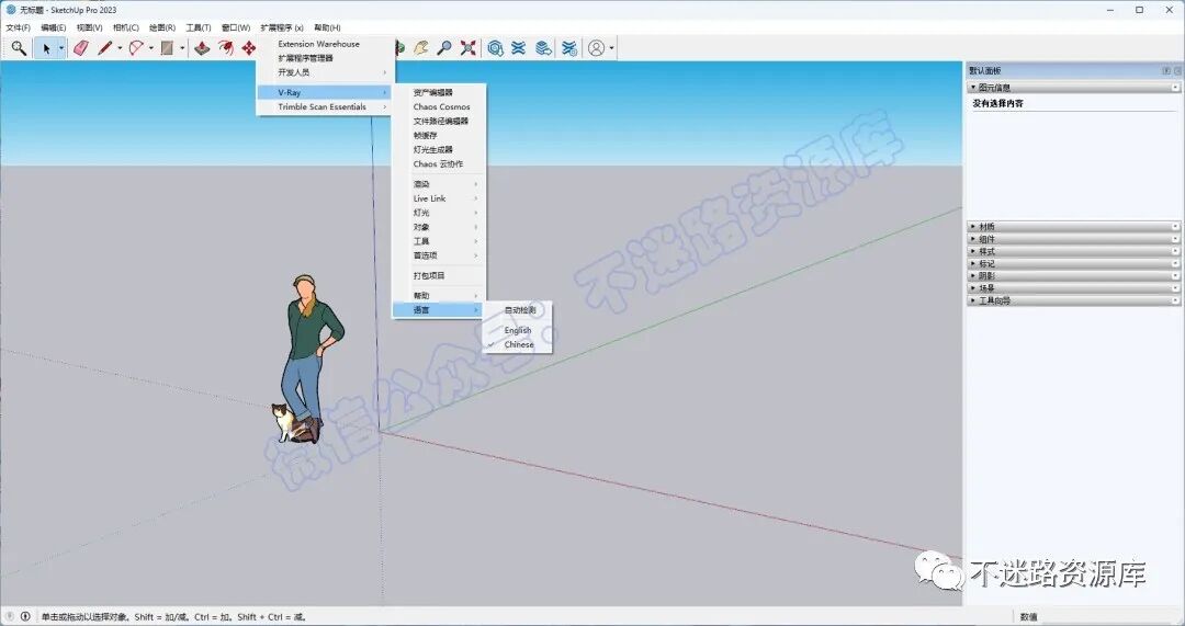 19.ÔÚSketchupÖÐÒ»´Îµã»÷“À©Õ¹³ÌÐò”²Ëµ¥——“V-ray”——“ÓïÑÔ”£¬Ñ¡Ôñ“Chinese”