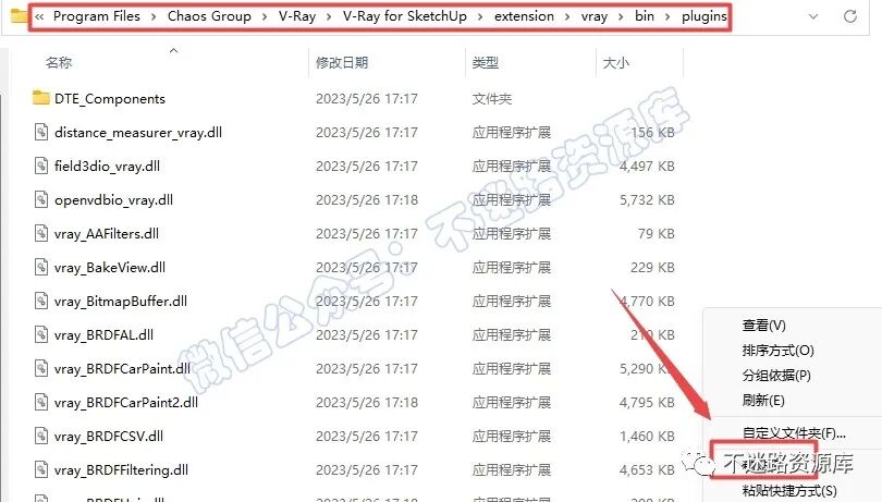 16.ÒÀ´Î´ò¿ªÎļþ¼Ð·¾¶“C:\Program Files\Chaos Group\V-Ray\V-Ray for SketchUp\extension\vray\bin\plugins”£¬ÔÚ´ò¿ªµÄÎļþ¼Ð¿Õ°×´¦£¬Êó±êÓÒ¼ü“Õ³Ìù”¸Õ²Å¸´ÖƵēvray_BRDFScanned.dll”Îļþ
