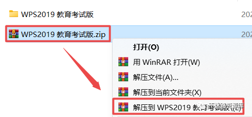 1.选中下载的压缩包,然后鼠标右键选择解压到"WPS2019专业增强无广告版"