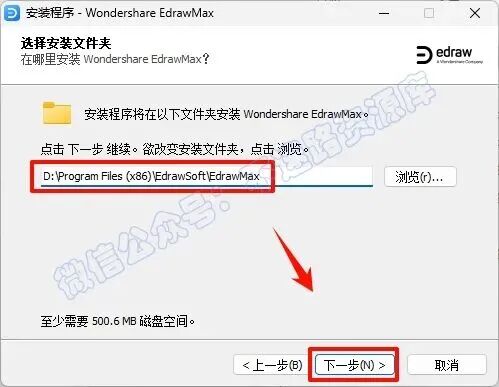 5.点击“浏览“可以选择软件安装路径,建议和教程中的保持一致,本例安装到D盘(将路径地址中的首字符C改为D表示安装到D盘,安装路径不要出现中文),点击“下一步”