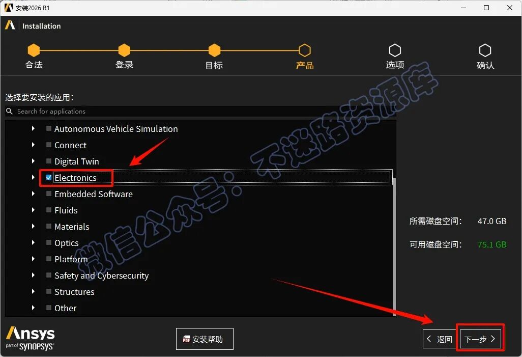 7.´Ë°²×°°üÖ»°üº¬µç´Å·ÂÕæÏà¹ØµÄÄÚÈÝ£¬ËùÒÔÖ»Äܹ´Ñ¡Electronics°²×°Ïµã»÷“ÏÂÒ»²½”