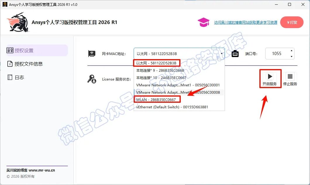 ÎÂܰÌáʾ£ºÇëÑ¡ÔñÒ»¸öÓÐЧµÄÎïÀíÍø¿¨£¨ÈçÓÐÏßÍø¿¨»òÎÞÏßÍø¿¨£©µÄMACµØÖ·¡£±ÜÃâÑ¡ÔñÃû³ÆÖдøÓÐ “Bluetooth”, “Virtual”, “VMware” µÈ×ÖÑùµÄÐéÄâÍø¿¨¡£Èç¹û²»È·¶¨£¬¿ÉÒÔÖð¸ö³¢ÊÔ¡£Í¨³£Çé¿öÏ£¬±£ÁôĬÈϵĶ˿ںż´¿É¡£ Èç¹ûĬÈ϶˿ڣ¨Èç1055£©Òѱ»ÆäËû³ÌÐòÕ¼Óã¬Äú¿ÉÒÔ×ÔÐÐÖ¸¶¨Ò»¸öδ±»Ê¹ÓõĶ˿ڣ¨ÀýÈç 1056µÈ£©¡£Èç¹û¿ªÆô·þÎñʧ°Ü£¬ÍùÍù»»Ò»¸ö¶Ë¿ÚºÅ¾Í¿ÉÒÔÁ˵ġ£