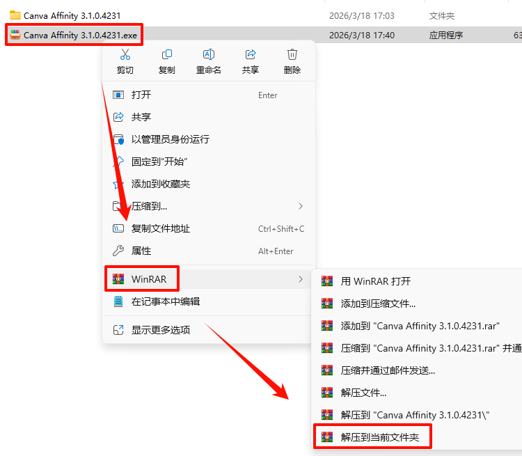 1.选中下载的压缩包,然后鼠标右键选择“解压到当前文件夹”