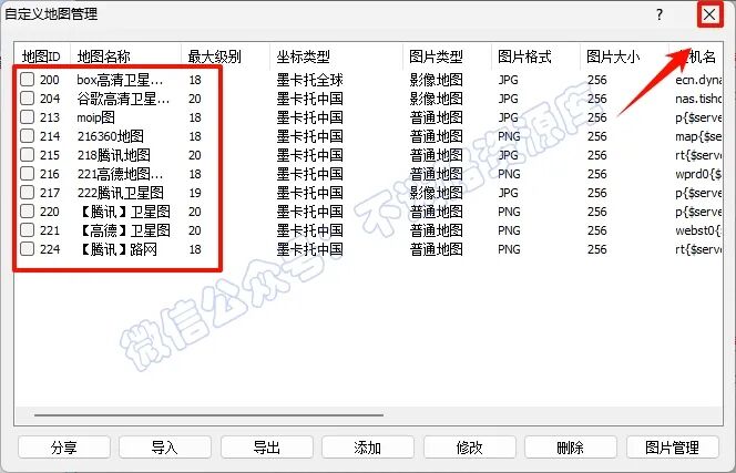 8.点击自定义地图,选择谷歌图源或者其他图源,即可正常使用,收藏夹不限制对象数量