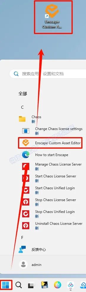 12.µã»÷“¿ªÊ¼“²Ëµ¥À¸£¬µã»÷“ËùÓÐÓ¦ÓÓ£¬ÕÒµ½“Enscape Custom Asset Editor“Èí¼þ£¬Êó±ê×ó¼üÍÏ×§µ½×ÀÃæÉϼ´¿É´´½¨×ÀÃæ¿ì½Ý·½Ê½