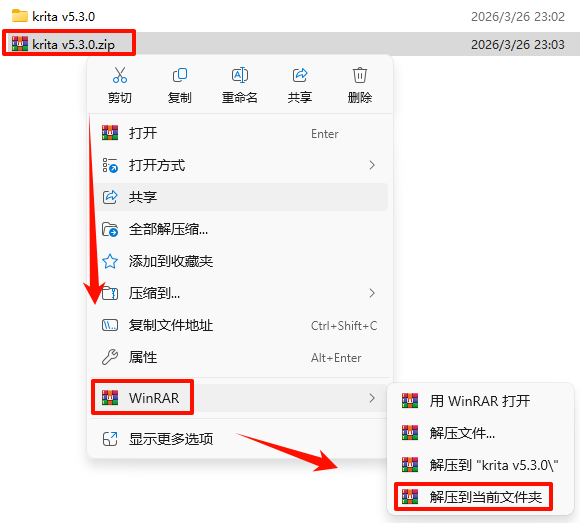 1.Ñ¡ÖÐÏÂÔØµÄѹËõ°ü£¬È»ºóÊó±êÓÒ¼üÑ¡Ôñ“½âѹµ½µ±Ç°Îļþ¼Ð”