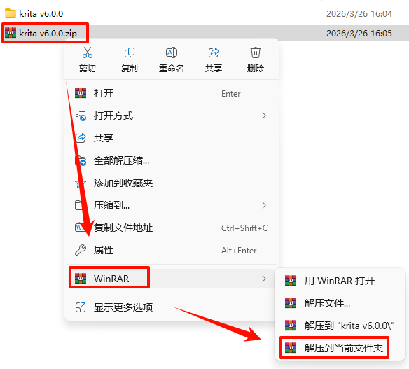 1.Ñ¡ÖÐÏÂÔØµÄѹËõ°ü£¬È»ºóÊó±êÓÒ¼üÑ¡Ôñ“½âѹµ½µ±Ç°Îļþ¼Ð”