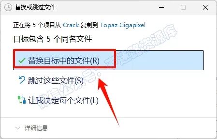 13.点击“替换目标中的文件“(若提示需要管理员权限,勾选“为所有...”,点击“继续”)