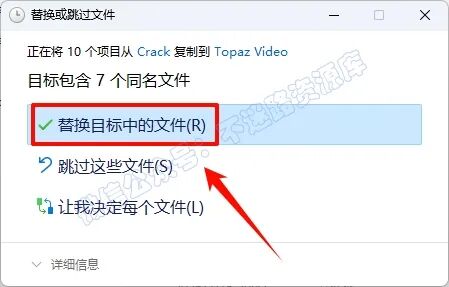 13.点击“替换目标中的文件“(若提示需要管理员权限,勾选“为所有...”,点击“继续”)